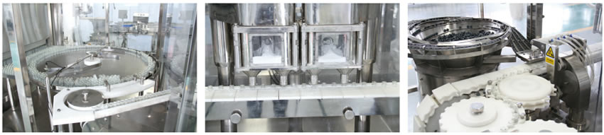 清洗采用超(chāo)聲波粗洗,先進的特製瓶(píng)鬥載瓶、模塊化清洗,十一(yī)道水(shuǐ)氣交替衝洗,機械式推出瓶;幹燥滅菌采用熱風循環,獨有的熱膨脹連接,水冷循環冷卻,烘箱網帶在線清洗;分裝機采用不鏽鋼帶送瓶,伺服電機控製四頭螺杆分裝,機械手上塞(sāi),可在線取樣,加粉及加塞采(cǎi)用(yòng)無(wú)菌對接(jiē)等先進工藝。
